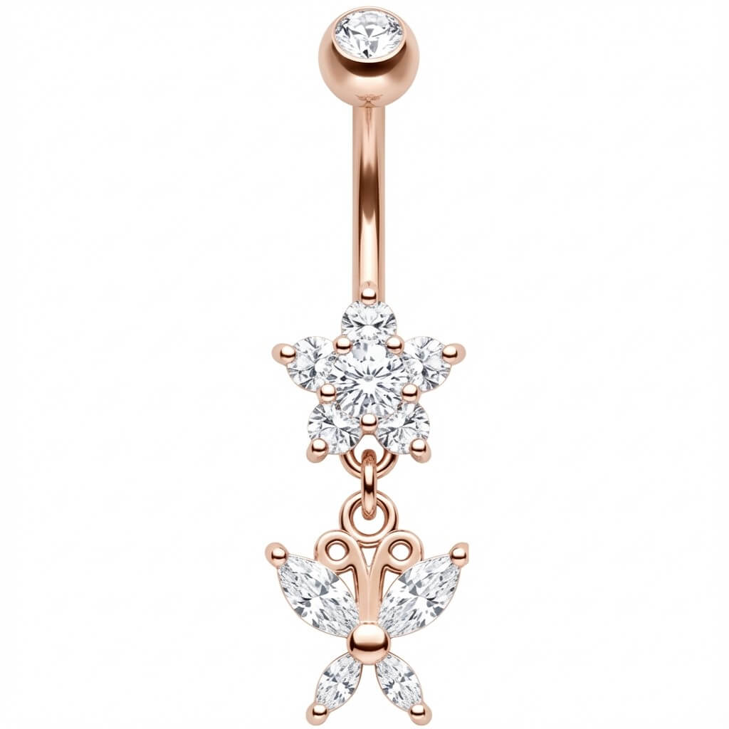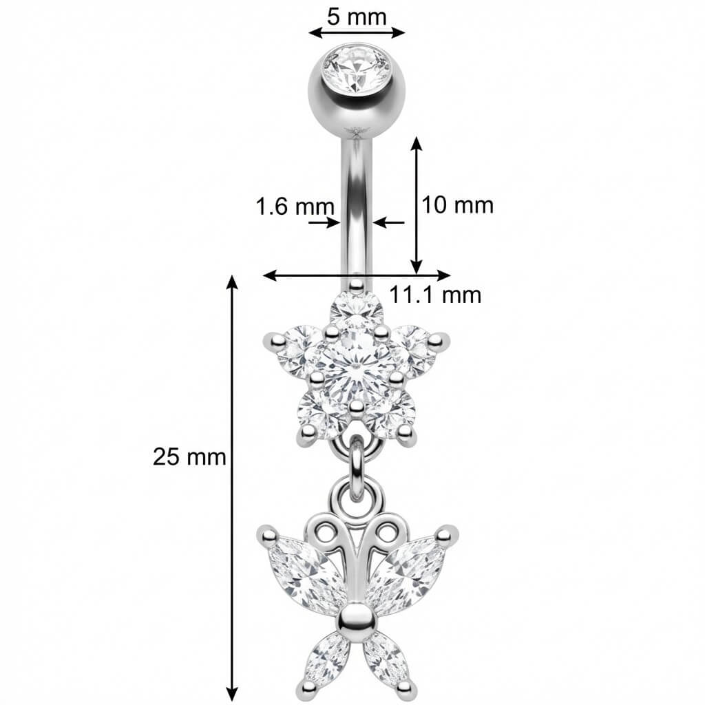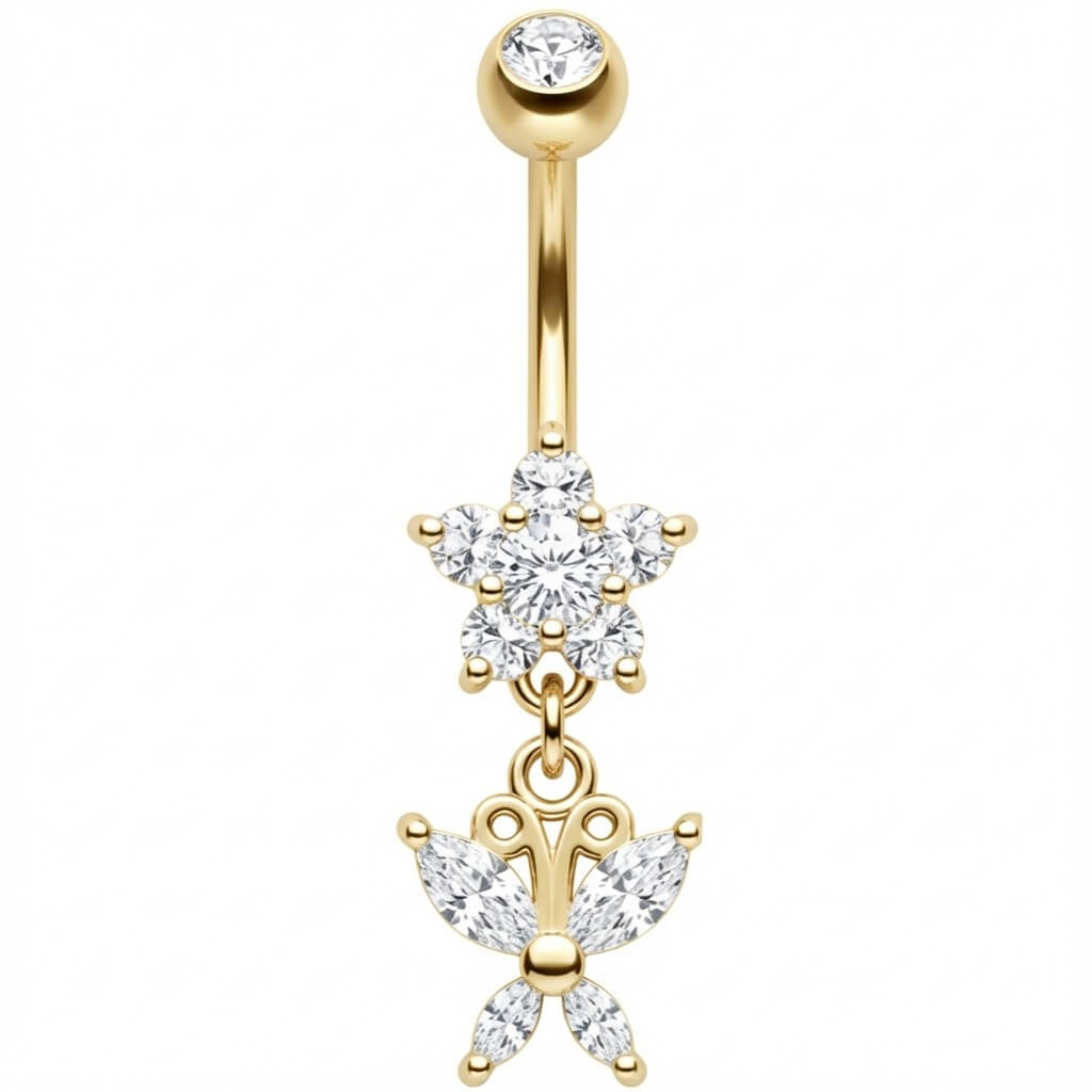 ¡Prepárate para deslumbrar! Esta impresionante joya destaca por su flor de cristal centelleante y una delicada mariposa colgante que atrapa la luz con cada movimiento. Fabricado en acero quirúrgico 316L de alta calidad, es el accesorio sexy definitivo para tus vibras veraniegas. Ya sea en la playa o de fiesta, este diseño llamativo hará que tu ombligo sea el centro de todas las miradas.