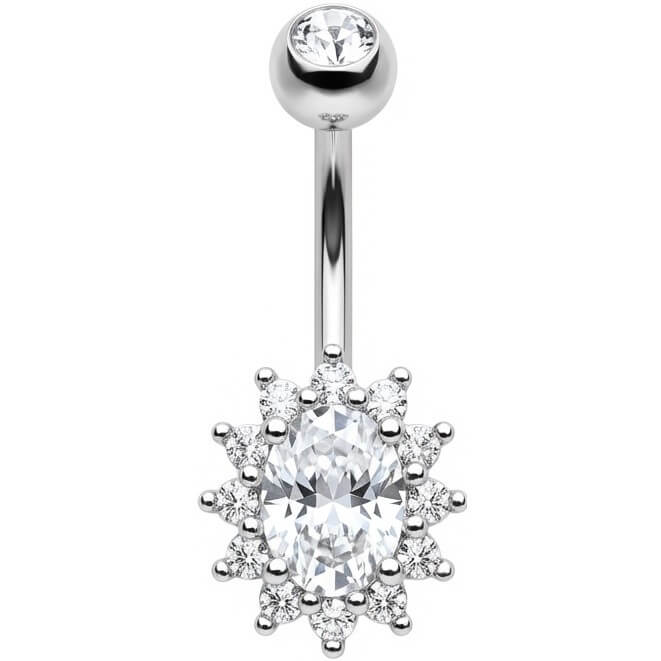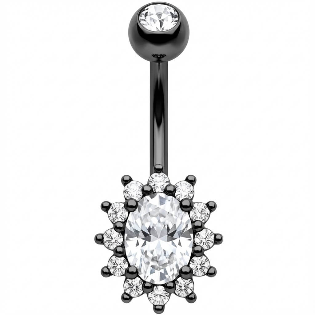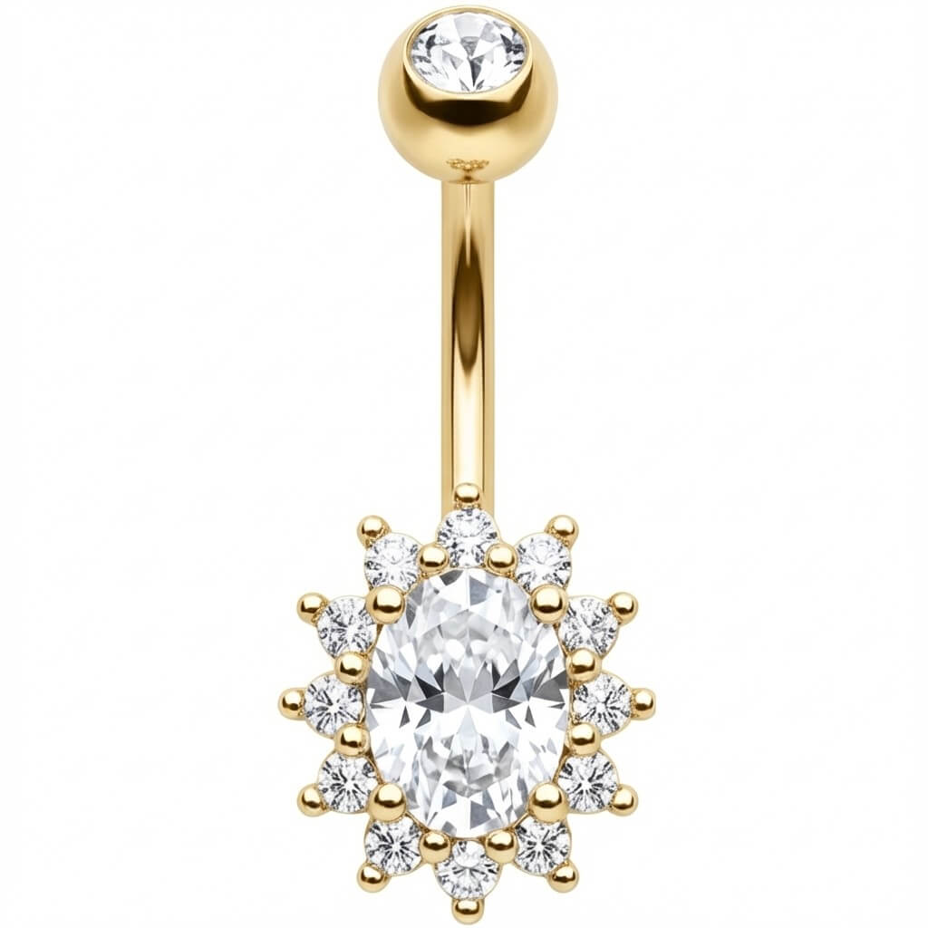 ¿Lista para deslumbrar este verano? Este diseño destaca por su impresionante cristal ovalado rodeado de un halo de piedras brillantes, creando un efecto solar espectacular. Hecho de Acero Quirúrgico 316L de alta calidad, es el accesorio sexy y duradero que tu ombligo necesita. Ya sea en la playa o luciendo un top corto, prepárate para ser el centro de todas las miradas con este toque de brillo irresistible.