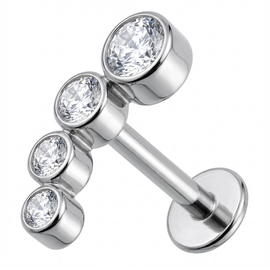 Eleva tu estilo con este precioso arco curvado de cuatro cristales brillantes. Hecho de Titanio de alta calidad, es totalmente hipoalergénico y seguro para tu piel. Su parte trasera plana te asegura la máxima comodidad, incluso al dormir. Perfecto para el hélix, conch o lóbulo, es la pieza versátil que necesitas para completar tu ear stack soñado.