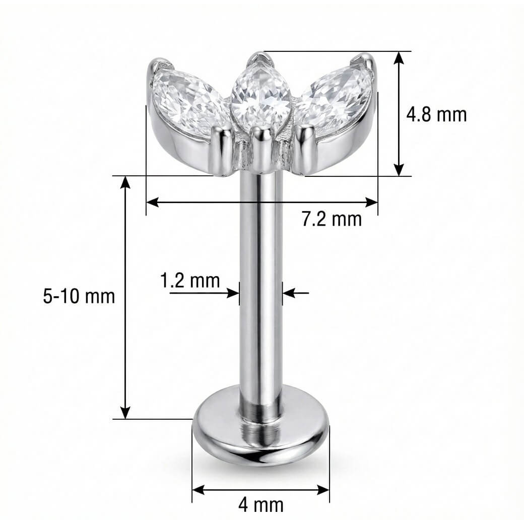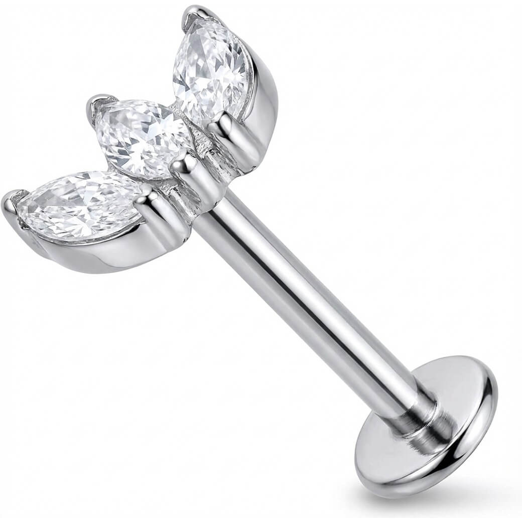 ¿Lista para brillar con luz propia? Este precioso diseño en abanico cuenta con tres cristales talla marquise que reflejan la luz de forma increíble. Es la pieza ideal para destacar en tu hélix, conch o flat. Hecho de Titanio de alta calidad, es totalmente hipoalergénico y resistente, perfecto para llevar a diario. ¡Eleva tu estilo y dale un toque chic a tu oreja!