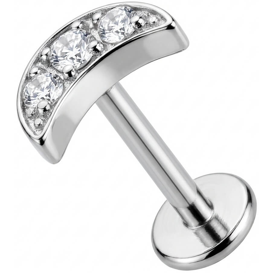 Dale un toque de brillo a tu oreja con este precioso arco curvado. Con tres piedras brillantes, su diseño sigue la forma natural de tu anatomía, ideal para el hélix o el conch. Hecho de Titanio de alta calidad, es totalmente hipoalergénico y resistente. ¡El complemento imprescindible para tu colección!