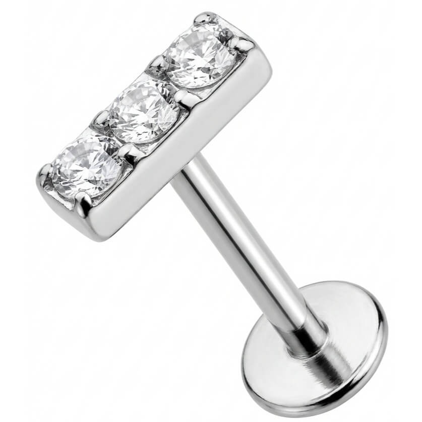 Dale un brillo extra a tu oreja con este diseño espectacular. Tres cristales transparentes alineados en una barra recta aportan elegancia instantánea a tu combinación favorita. Hecho de Titanio resistente, es totalmente seguro para tu piel, hipoalergénico y perfecto para llevarlo siempre contigo. La opción ideal para lucir y destacar en el hélix, tragus o lóbulo.