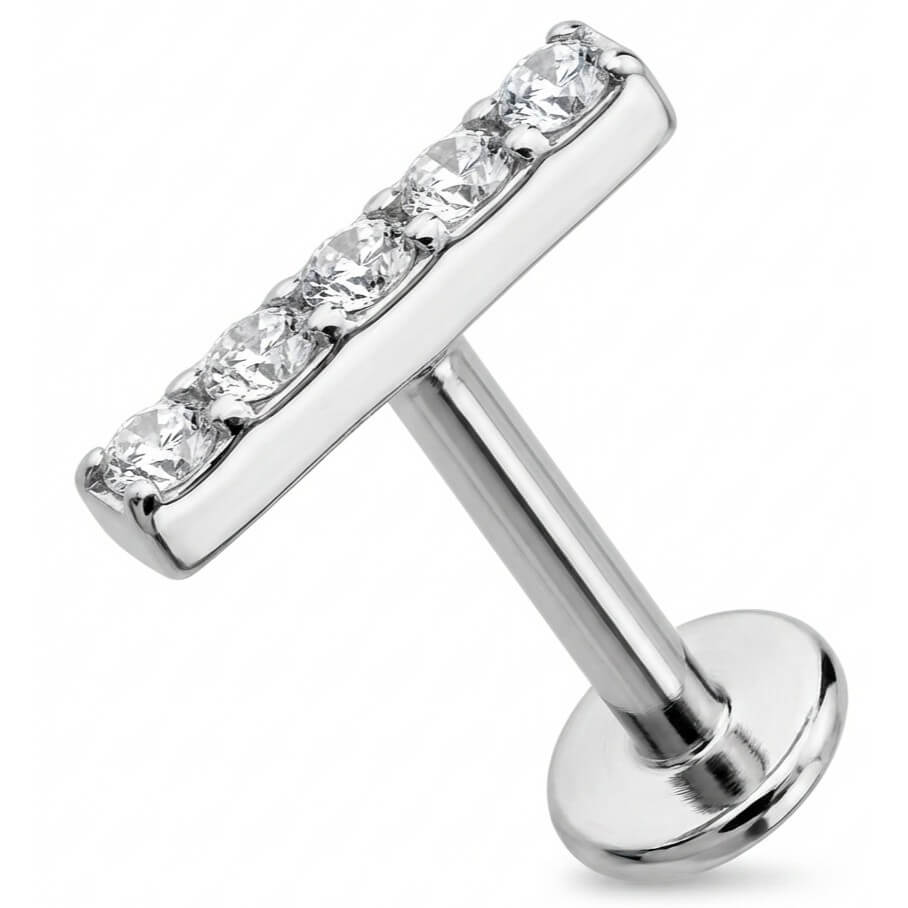 ¿Lista para deslumbrar? Este diseño de barra cuenta con cinco cristales resplandecientes alineados a la perfección, creando una línea de luz irresistible. Es el complemento ideal para elevar tu ear stack, quedando espectacular en el hélix o el lóbulo superior. Hecho de Titanio de alta calidad, es totalmente hipoalergénico y duradero. ¡Dale un toque de brillo y elegancia a tu colección hoy mismo!