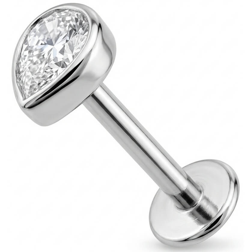 ¿Lista para brillar? Este cristal en forma de lágrima es el complemento ideal para elevar tu estilo. Su engaste biselado asegura que no se enganche en el pelo, haciéndolo perfecto para el hélix, tragus o lóbulo. Hecho de Titanio de grado implante, es totalmente hipoalergénico y duradero. ¡Consigue ese toque chic y radiante que estabas buscando para tu oreja!