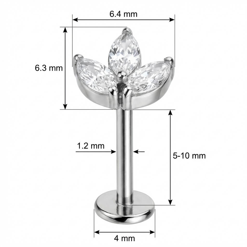 Eleva tu estilo con este diseño floral lleno de brillo. Con tres cristales claros talla marquise dispuestos en abanico, es el complemento perfecto para tu hélix, conch o lóbulo. Hecho de Titanio de primera calidad, es hipoalergénico y muy duradero. Dale un toque de luz a tu oreja con esta pieza imprescindible.