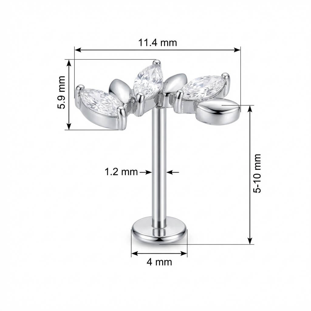 Dale un toque de luz a tu oreja con esta preciosa enredadera. Su diseño curvo combina cristales talla marquise con hojas lisas de metal, creando un equilibrio perfecto entre brillo y textura. Hecho de Titanio de grado implante, es totalmente hipoalergénico y seguro para tu piel. ¡El complemento ideal para destacar tu helix o conch con estilo!