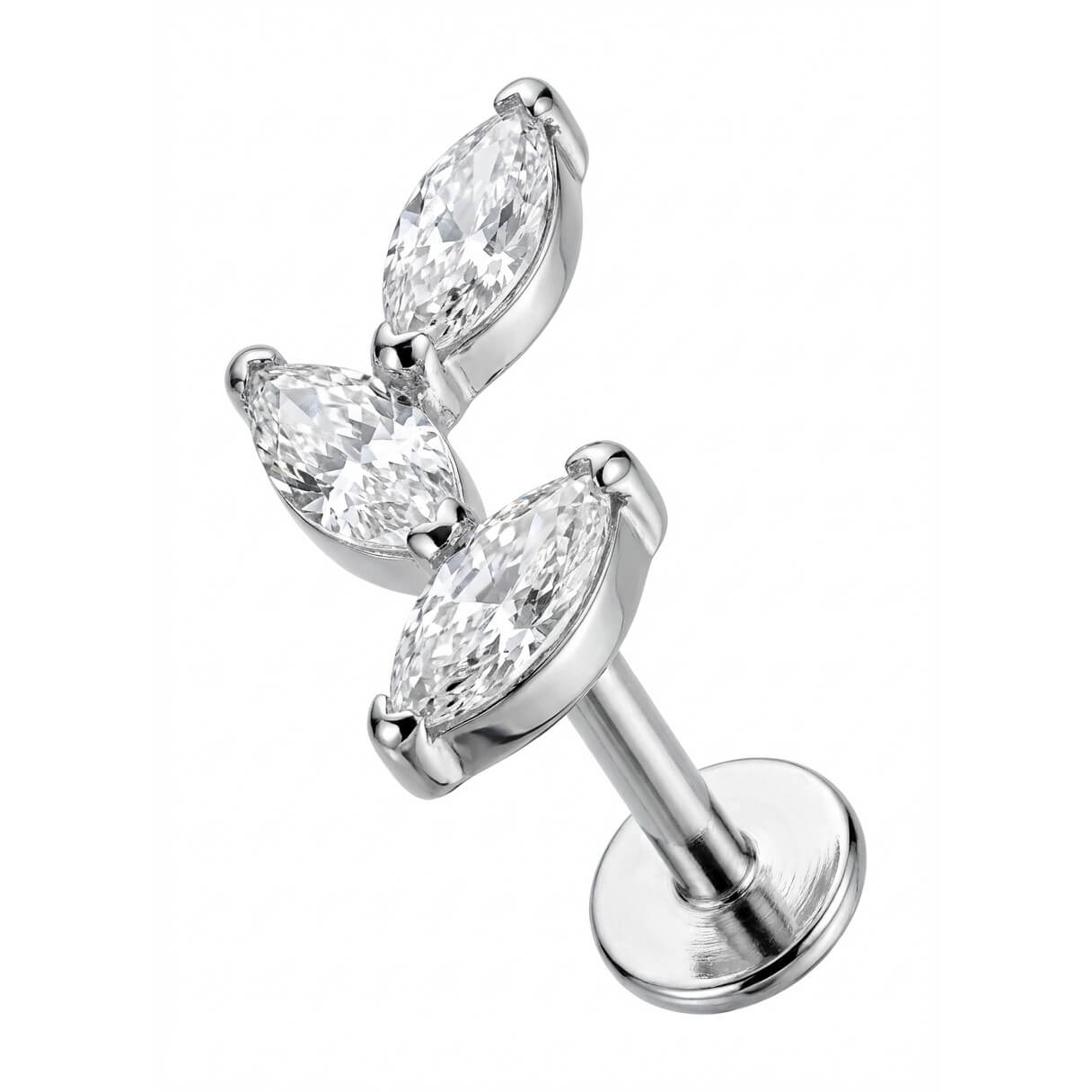 ¿Lista para brillar? Este diseño de enredadera cuenta con tres cristales talla marquise que reflejan la luz espectacularmente. Hecho de Titanio de alta calidad, es hipoalergénico y duradero. Perfecto para tu Helix, Conch o Lóbulo, añade un toque de glamour inspirado en la naturaleza a tu combinación de pendientes.
