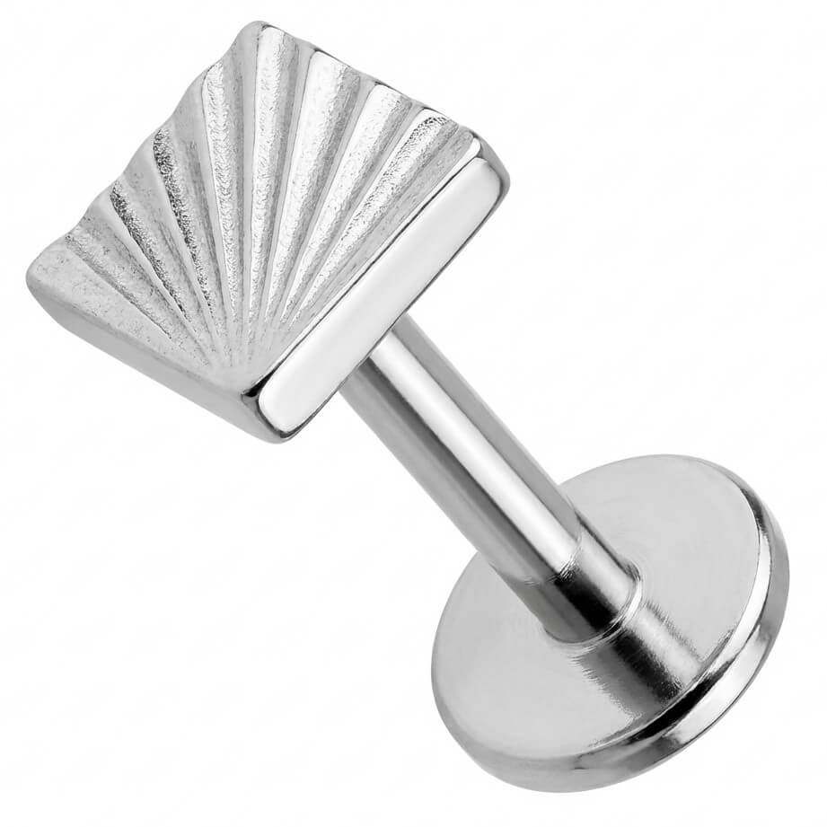 Dale un toque Art Déco a tu oreja con esta pieza única. Este diseño de abanico destaca por sus rayos texturizados que aportan profundidad y estilo. Hecho de Titanio de grado implante, es totalmente hipoalergénico y duradero. Perfecto para lucir en el hélix, tragus o lóbulo. La pieza ideal para elevar tu colección de accesorios.